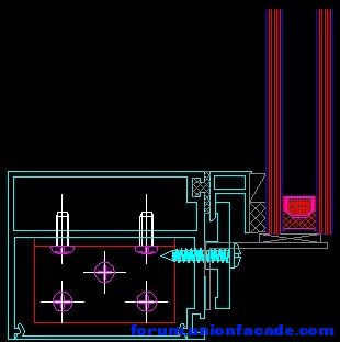 全隱或是橫隱玻璃幕墻托條通常是用角鋁固定在玻框上。也可以在主龍骨(橫向相鄰兩張玻璃玻璃膠縫處)上一個承重角鋁。