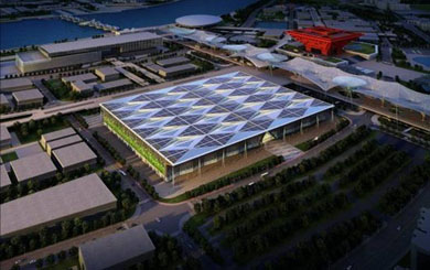 遠大公司對世博主題館項目的太陽能主支撐系統進行了設計,通過反復研究,采用鋼桁架作為主支撐體系,上方設置鋼方通作為太陽能系統的支撐龍骨。