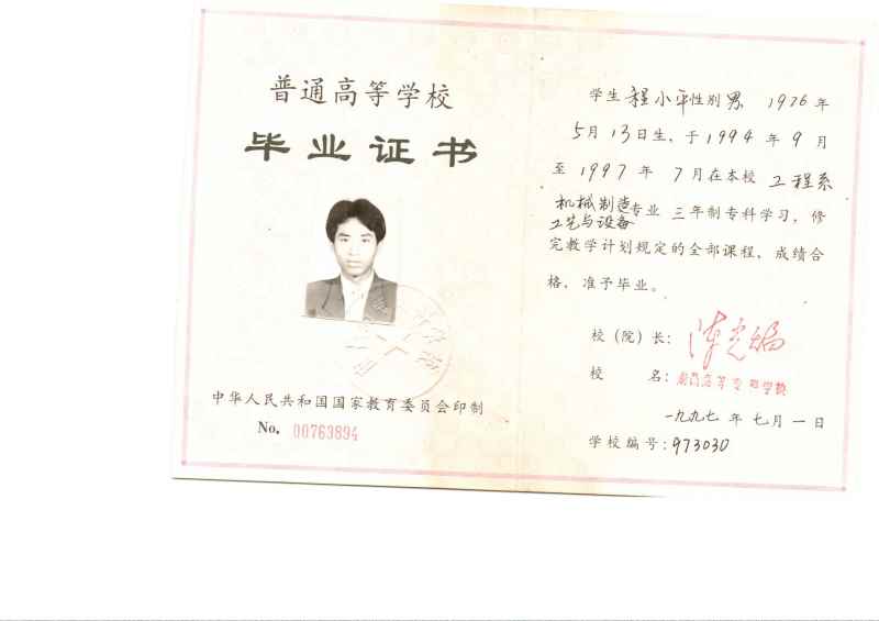 畢業學校: | 南昌高等等專科學校 | 所學專業: | 機械制造與工藝設備 | |