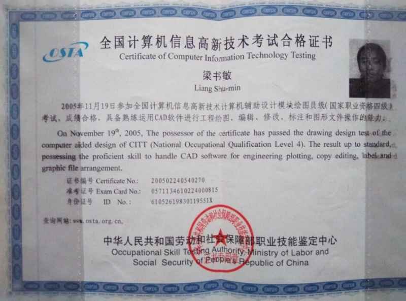 學歷教育 2017年01月畢業~中央廣播電視大學~土木工程(本科) 2007年07月畢業~陜西航空職業技術學院~數控設備維修技術(大專) 獲得證書 CAD繪圖操作證書 二級建造師證書、配套安全B證 專業技能 AutoCAD:熟練18年經驗 word/Excel辦公軟件18年經驗 工作認真負責,學習能力強,有上進心.團隊意識強 |