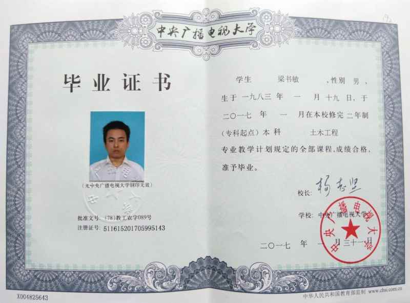 畢業學校: | 中央廣播電視大學 | 所學專業: | 土木工程 | |
