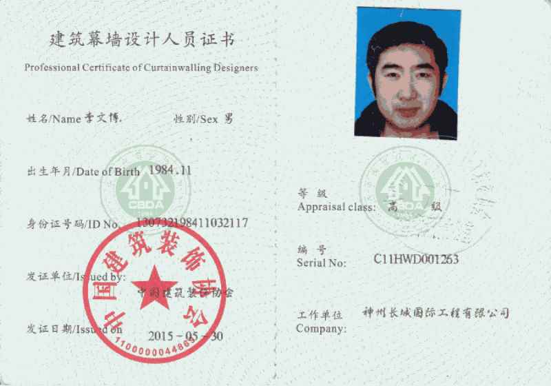 本人對工作認真負責,謹慎,穩重,對事對人有著一股內斂的熱誠;喜歡并善于思考,具有較強的集體榮譽感和團隊合作精神;接受能力強,具有一定的組織能力。 本人精通幕墻結構計算,熟練使用MATHCAD、匯寶、豪沃克、犀牛參數化及SP2000有限元結構計算軟件,擅長的幕墻形式:光伏幕墻、框架式玻璃幕墻、單元式玻璃幕墻、鋼結構式點玻幕墻、吊掛玻璃全玻幕墻、拉索點支幕墻、鋁板幕墻、波紋鋁板幕墻、穿孔鋁板幕墻、不銹鋼掛件石材幕墻、鋁合金掛件石材幕墻、背栓式石材幕墻、陶土板幕墻、GRC構件式幕墻、木纖維板幕墻、玻璃雨篷、采光頂、玻璃欄板、鋁合金百葉、鋁合金格柵、鋁合金門窗、地彈門及直立鎖邊鋁鎂錳合金金屬屋面等。 證書:2015年5月:建筑幕墻設計人員證書(高級) 2016年:一級建造師(建筑工程) |