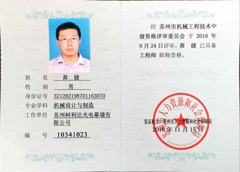 2008年-2011年5月在蘇州柯利達建筑裝飾工程有限公司從事幕墻設計工作,2011年6月至今在蘇州柯利達裝飾股份有限公司從事幕墻設計工作 。 近幾年所做的工程有湖西商業配套用房(錦繡鄰里匯)外裝飾工程(蘇州市城鄉建設系統優秀勘察設計獎),月亮灣九年一貫制學校幕墻工程(蘇州市城鄉建設系統優秀勘察設計獎),科技城科技服務區二區,科技城智慧谷(E地塊)孵化器幕墻工程,潤南大廈,玖隆廣場物流區,花橋國際博覽中心副展館,青商大廈,蘇州科技城人才配套服務基地一區F#超市區,上海虹橋商務區核心區一期04地塊,徐州觀音機場二期擴建工程旅客航站樓等,嘉定新城C13-1地塊商業項目商業部分,虹橋商務區主功能區物流片區1號地塊,蘇州科技城科研中試B區配套立體停車樓,新一代信息技術產業園項目一期工程,蘇地2017-WG-13號地塊項目,南昌A-11地塊三期項目,相城區人民檢察院,蘇州陸家嘴錦繡瀾山2號地塊雷丁學校外立面項目,XDG-2016-34號地塊住宅小區項目,張地2016-B08地塊商業用房項目外立面裝飾,蘇州新住大酒店裝修工程,蘇地2018-WG-16號地塊項目,張家港2014-B06-A地塊項目外立面裝飾,徐州恒大御湖天下146地塊,中歐校友蘇州總部大廈項目,州恒大御湖天下2017-154地塊,南通恒大林語郡項目,常州恒大翡翠華庭項目,溧陽市恒大觀瀾府項目,吳江供電所開平路北君悅路東側商務用地項目; 發表的著作2014年江蘇省裝飾裝修-《清新、簡明的建筑風格-蘇州沙湖股權投資中心》,2014年江蘇省裝飾裝修-《張家港市2007-A04號地塊項目工程》,2015年柯利達裝飾股份有限公司-《蘇州新區實驗幼兒園擴建教學樓》 發明的專利2012年實用新型專利-穿孔鋁板鋁合金推拉窗,2012年實用新型專利-玻璃幕墻懸掛式上懸開啟窗側向限位系統,2013年實用新型專利-隱框玻璃欄桿裝置,2014年實用新型專利-鋁板幕墻系統。 |