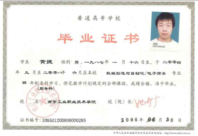 1.東南大學CAD培訓中心取得AutoCAD證書。 2.南京工業職業技術學院機械制造與自動化/電子商務專業證書。 3.西南科技大學土木工程證書。 4.機械工程師證書 5.希望貴公司在蘇州,能提供獨立完成工程的。 |