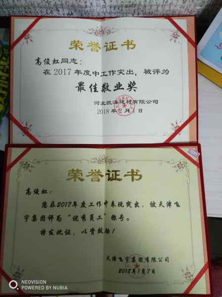 天津飛宇集團(tuán):鋁合金門窗與木工門窗、不銹鋼門窗,切下料,角條,穿條,扣條,中挺拼安裝,玻璃中空,玻璃洗清,磨邊玻璃,玻璃幕墻安裝工,多功能銑床,鉆床,端面銑床。都熟悉技術(shù),我是本好人,待人友好,為人誠實謙虛。工作勤奮,認(rèn)真負(fù)責(zé),能吃苦耐勞,盡職盡責(zé),有耐心,榮譽(yù)證書“在2017年度中工作突出,被評為最佳敬業(yè)獎” ‘在2017年度中工作突出,被評為天津飛宇幕墻集團(tuán)評為“優(yōu)秀員工” |