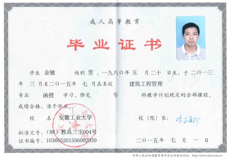 畢業學校: | 安徽工業大學 | 所學專業: | 工程管理 | |
