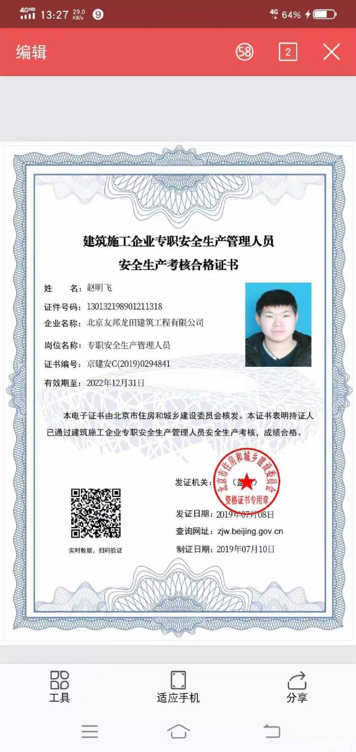 工作經(jīng)驗(yàn): 2019/11月份任職濟(jì)南市章丘區(qū)北京建工安全員 2019/9月份任職東方一品中國青建班組安全員 |