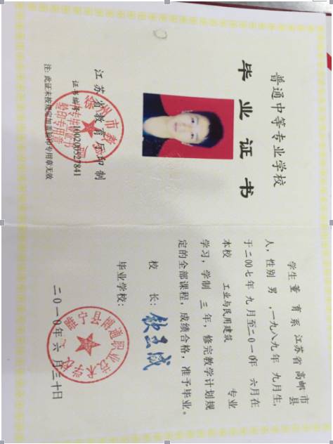 畢業學校: | 睢寧技工學校 | 所學專業: | 工民建 | |