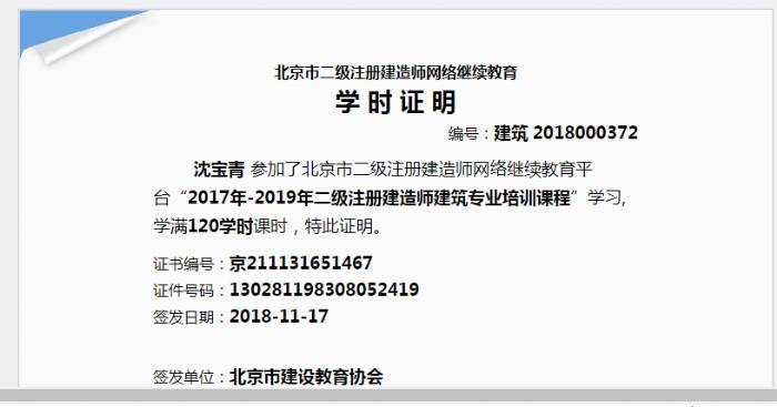 勤奮,好學(xué),謙虛謹(jǐn)慎 二級建造師(北京建筑) 助理工程師 |