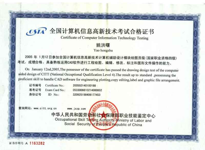 技術特長: | 熟練操作PROJECT、EXCEL等辦公軟件,會做工程資料,多年現場施工管理經驗 |