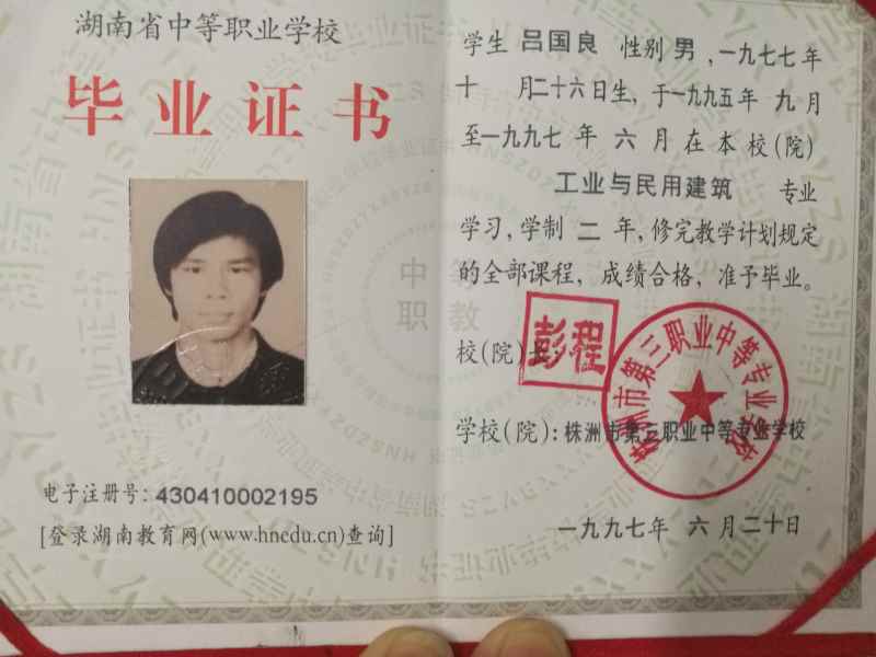 畢業學校: | 株洲市第三職業中等專業學校 | 所學專業: | 工民建 | |