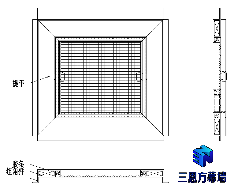非隱形和不用合頁的那種,也沒有框,只是一個單扇,兩種或三種料組角的,嵌入卡到扇外內口上(大面內口邊緣),橡膠拉手壓到紗網膠條內,用法:安裝是上提,再落到下邊翅兒上,里外推不會掉落。